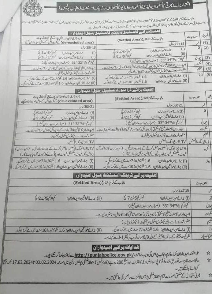 Visit www.punjabpolice.gov.pk to get the Employment Form.
