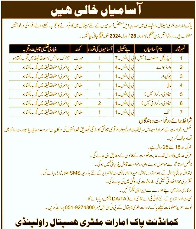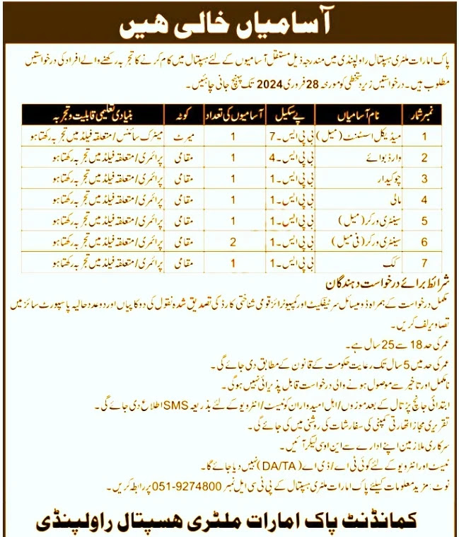 For further information and to apply for the latest job opportunities at the Pak Emirates Military Hospital, interested candidates are encouraged to read the complete advertisement online.