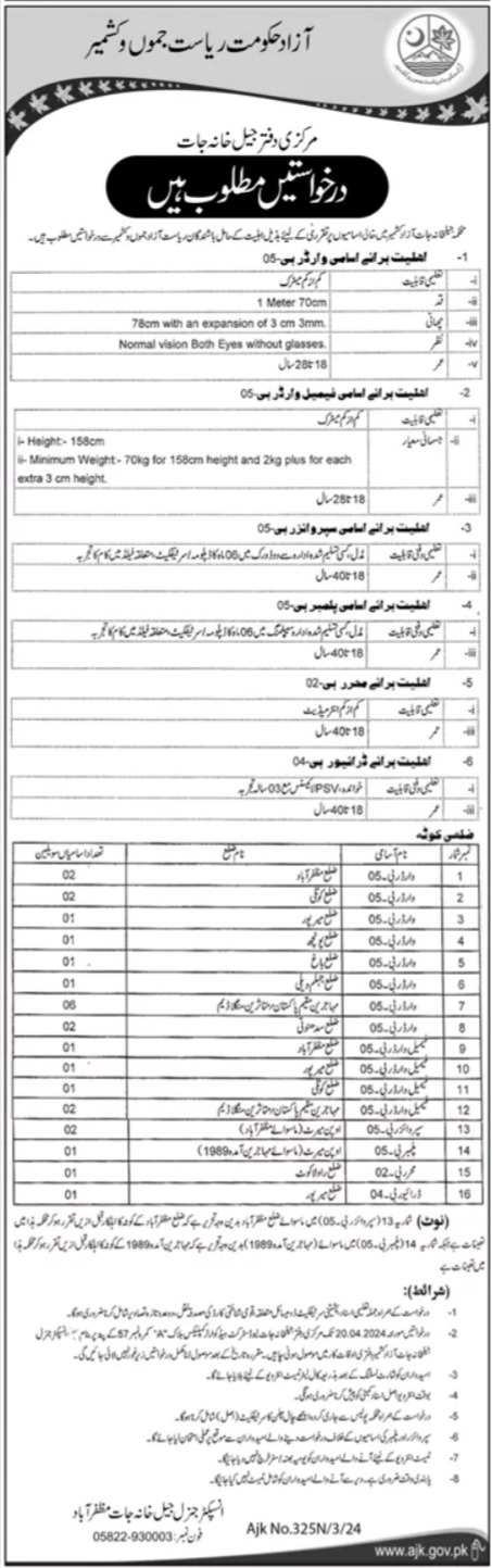 The Jail Department of Muzaffarabad, AJK Pakistan, has recently announced several job openings in various positions.