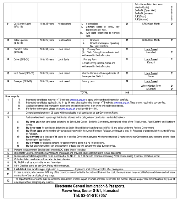3. Candidates applying for positions numbered 11 to 14 should also apply online through the NTS website: www.nts.org.pk. No fees are required for these positions.