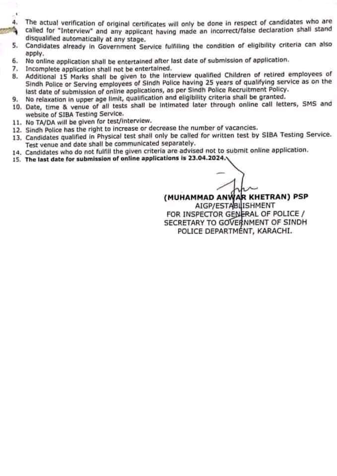 New job openings for security positions in the Sindh Police are available in various cities including Karachi, Badin, Thatta, Benazirabad, Hyderabad, Larkana, Khairpur, Qambar Shahdadkot, Sujawal, Jamshoro, Ghotki, and Tharparkar in Sindh, Pakistan.