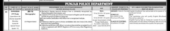 Latest Stenographer Jobs in Punjab Police - February 2024 - 277 Positions