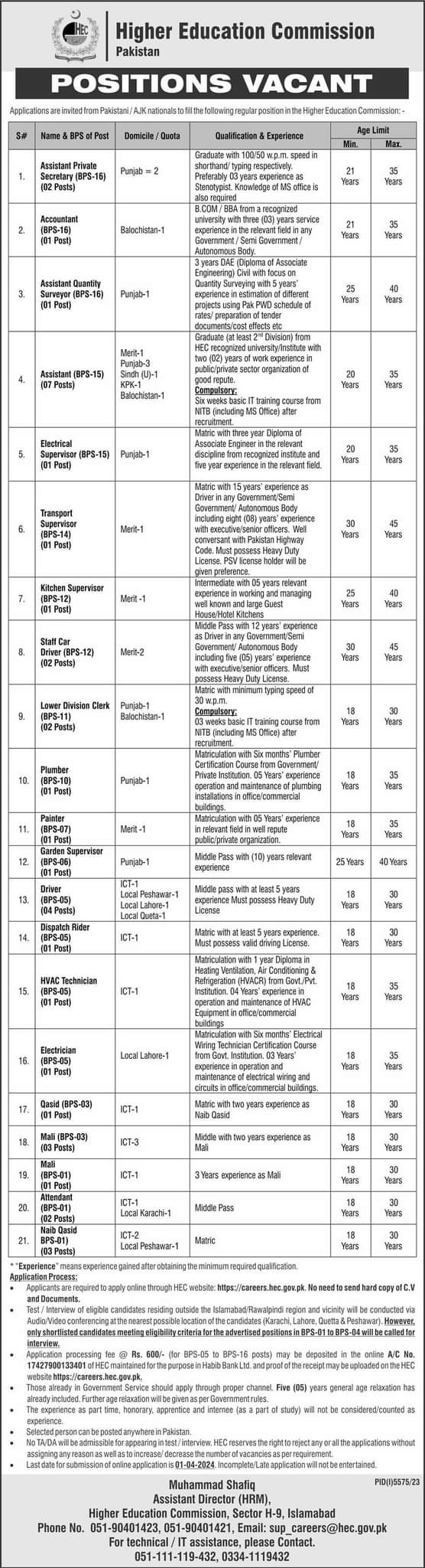 The Higher Education Commission (HEC) in Islamabad is seeking applicants for various positions advertised in The News on March 17, 2024. If you’re interested, you can apply for roles such as: