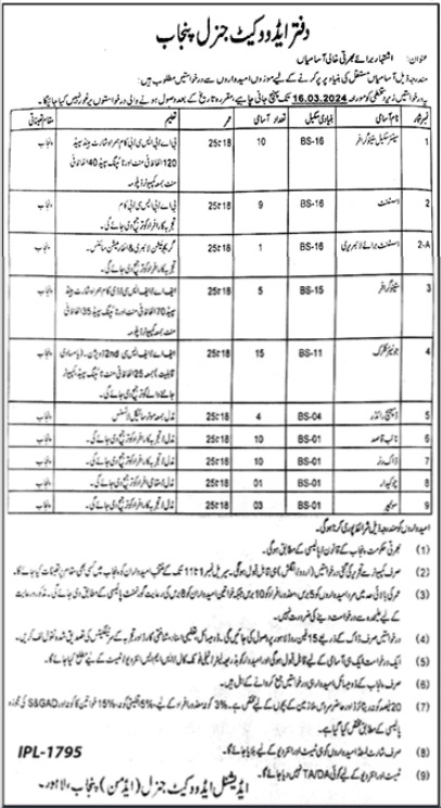 Advocate General’s Office Lahore, Punjab, Pakistan has announced various job vacancies as of March 6, 2024, in the daily Jang Newspaper.