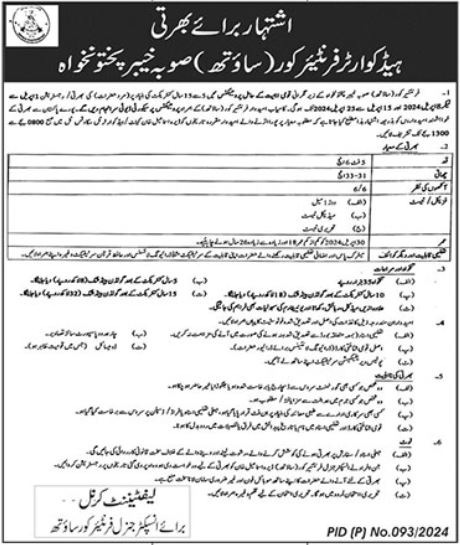 The vacancies were advertised in the daily Jang dated March 28, 2024, offering employment for individuals interested in serving their nation in the esteemed Frontier Core.