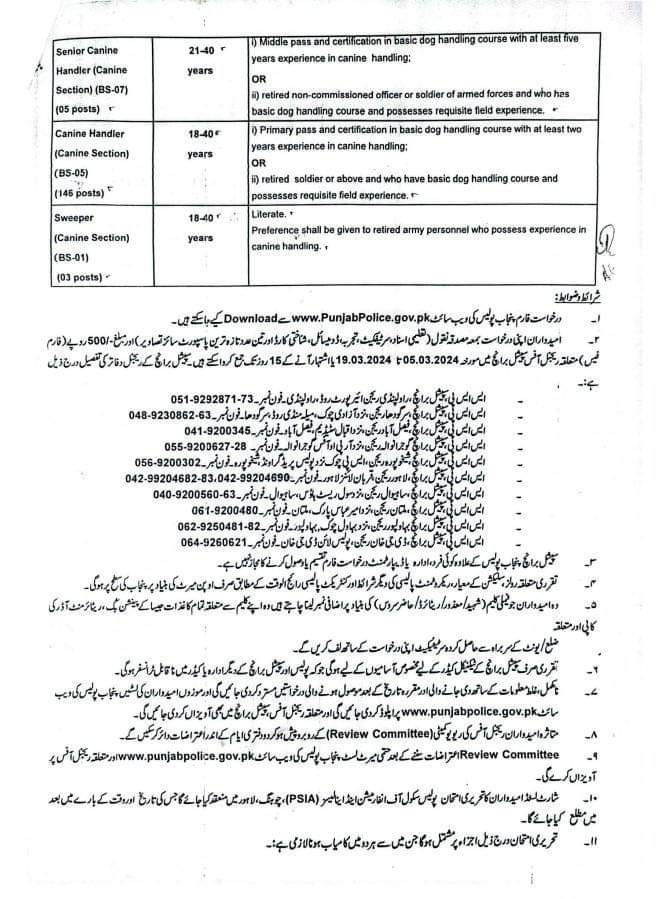 Application forms for these job vacancies can be found on the Punjab Police Job portal website www.punjabpolice.gov.pk.