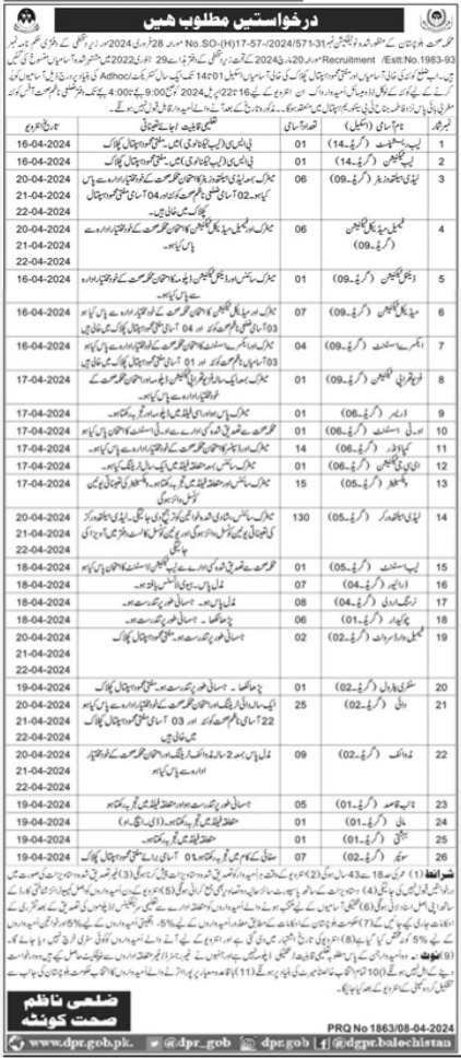 The Health Department of Quetta, Balochistan, Pakistan, has announced several job opportunities in various positions. Advertised in the daily Roznama 92 News on April 9, 2024, these vacancies aim to fill crucial roles in healthcare provision across the region. With diverse positions ranging from lady health workers to drivers, the department seeks qualified individuals to contribute to the well-being of the community.