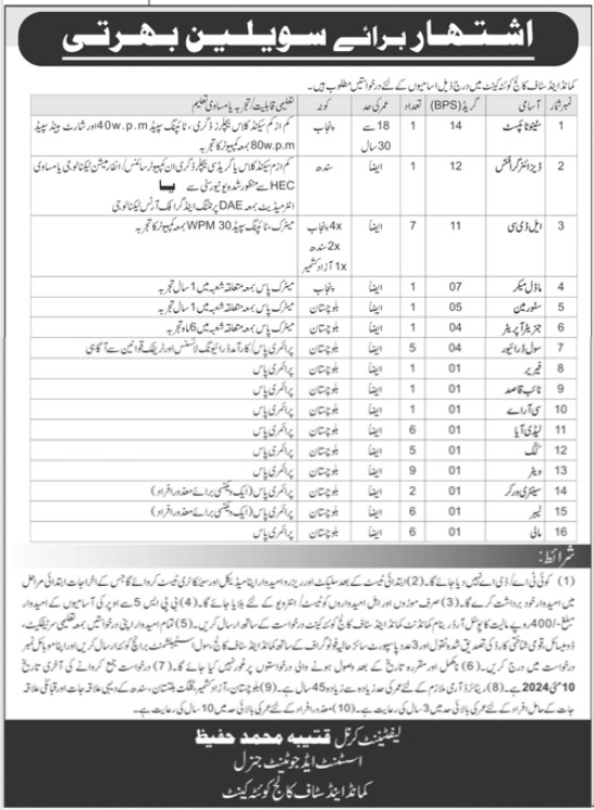 The Command and Staff College in Quetta, Balochistan, Pakistan, has recently announced various vacant positions through an advertisement published in the daily Jang Newspaper on 16th April 2024.